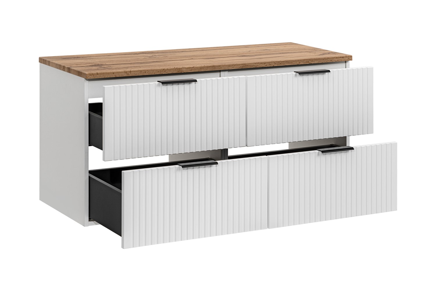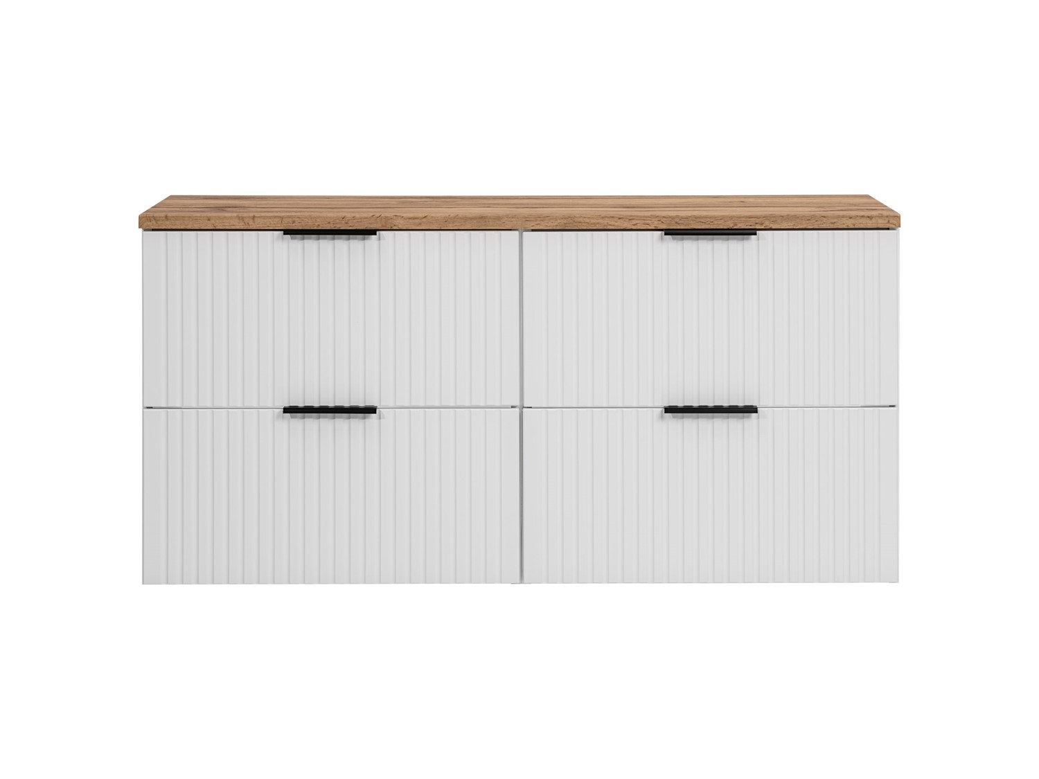 Nowa kolekcja meblli w kolorze Białym to synonim elegancji i funkcjonalności. Zaprojektowana z myślą o uniwersalnym zastosowaniu, doskonale sprawdza się zarówno w nowoczesnych, jak i klasycznych aranżacjach wnętrz. Charakteryzują się wysoką jakością wykonania oraz wyjątkową funkcjonalnością, zapewniając komfort użytkowania nawet najbardziej wymagającym klientom. Meble wyróżniają się klasycznymi proporcjami brył i frezowanymi pionowo frontami, które nadają meblom unikalny i elegancki charakter. Dzięki prostym liniom i wyrafinowanym wykończeniom, meble z tej kolekcji idealnie wpisują się w różnorodne style dekoracyjne, od minimalistycznych po bardziej tradycyjne. W zestawie znajdują się dwie szafki z blatem.
