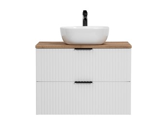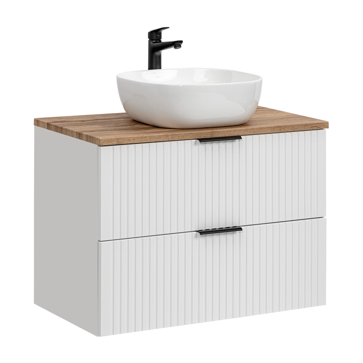 Nowa kolekcja mebli w kolorze Białym to synonim elegancji i funkcjonalności. Zaprojektowana z myślą o uniwersalnym zastosowaniu, doskonale sprawdza się zarówno w nowoczesnych, jak i klasycznych aranżacjach wnętrz. Charakteryzują się wysoką jakością wykonania oraz wyjątkową funkcjonalnością, zapewniając komfort użytkowania nawet najbardziej wymagającym klientom. Prezentowana kolekcja wyróżnia się klasycznymi proporcjami brył i frezowanymi pionowo frontami, które nadają meblom unikalny i elegancki charakter. Dębowy kolor dodaje wnętrzom ciepła i naturalnego uroku, tworząc przytulną atmosferę. W zestawie znajduje się szafka z blatem oraz umywalką.