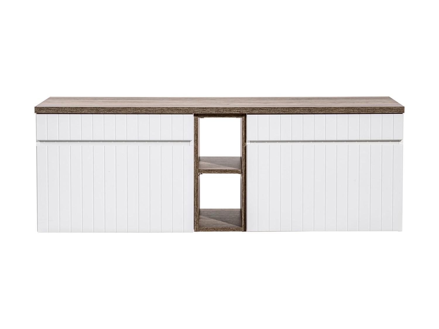 Prezentowana kolekcja mebli to nowoczesne połączenie elegancji i funkcjonalności, zaprojektowane z myślą o najbardziej wymagających użytkownikach. Wyróżnia się unikalnymi pionowymi frezowaniami we frontach i korpusie, które nadają meblom niepowtarzalny charakter i dynamikę. Dzięki tej wyjątkowej strukturze, meble wprowadzają do łazienki ruch i płynność, tworząc harmonijną i stylową przestrzeń. Nowoczesna kolorystyka oraz wyrafinowane detale czynią ją wyjątkową propozycją do każdej łazienki. Zestawy mebli wykonane są z wysokiej jakości materiałów, takich jak płyta laminowana i MDF, co zapewnia ich trwałość i odporność na wilgoć. Starannie dobrane komponenty oraz precyzyjne wykończenie gwarantują, że meble te będą służyć przez wiele lat, zachowując swój piękny wygląd i funkcjonalność. W zestawie znajdują się dwie szafki z blatem i regał.