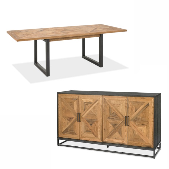 Kolekcja Indus to meble w stylu loftowym i industrialnym, które łączą prostą stal, ciemne struktury grafitowe oraz blaty i panele z naturalnego drewna z niezwykłymi intarsjami. Masywne metalowe nogi w kolorze industrialnej czarnej stali doskonale współgrają z czarnym drewnianym korpusem z widoczną drewnianą konstrukcją. Kontrastowy front i blat w kształcie litery X wykonany z naturalnego olejowanego dębu nadają całości niepowtarzalnego charakteru. Kolekcja Indus to propozycja dla tych, którzy cenią najwyższą jakość wykonania, funkcjonalność i nietuzinkowy wygląd.