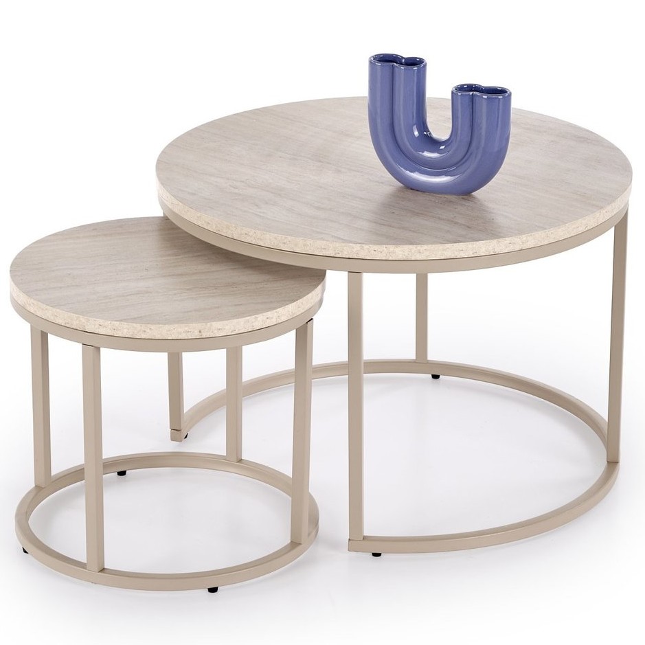 Zestaw dwóch ław to praktyczne i stylowe rozwiązanie do salonu lub pokoju dziennego. Dzięki różnym rozmiarom stoliki można ustawiać razem lub osobno, w zależności od potrzeb. Nowoczesny design sprawia, że komplet doskonale komponuje się z wieloma aranżacjami wnętrz. Solidna konstrukcja gwarantuje stabilność oraz trwałość podczas codziennego użytkowania. Blaty zapewniają wygodne miejsce na kawę, książki, dekoracje lub drobne przekąski. Zestaw pozwala na funkcjonalne zagospodarowanie przestrzeni w pomieszczeniu. Staranne wykonanie podkreśla estetykę i wysoką jakość mebli. To idealne połączenie elegancji, wygody oraz praktycznego zastosowania.