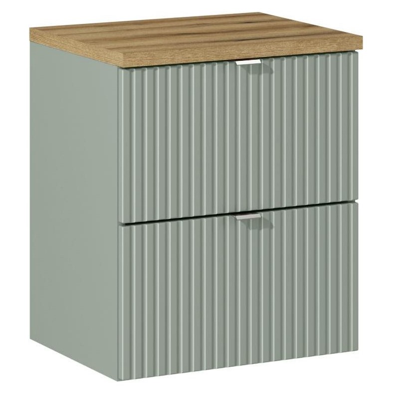 Prezentowana kolekcja mebli to propozycja, która łączy nowoczesny design z klasyczną elegancją. Wykorzystanie poziomych frezowań na frontach, znanych również jako ryflowanie, nadaje meblom wyjątkowego charakteru, wprowadzając ruch i płynność do każdego wnętrza łazienki.Ten wyjątkowy odcień zieleni wprowadza do łazienki atmosferę spokoju i relaksu, tworząc przestrzeń, w której każdy detal ma znaczenie. Meble nie tylko upiększają łazienkę, ale także zwiększają jej funkcjonalność, oferując praktyczne rozwiązania przechowywania i elastyczność w aranżacji przestrzeni. Dzięki wysokiej jakości materiałom i precyzyjnemu wykonaniu, przedstawiona kolekcja mebli gwarantuje trwałość i niezawodność na lata.