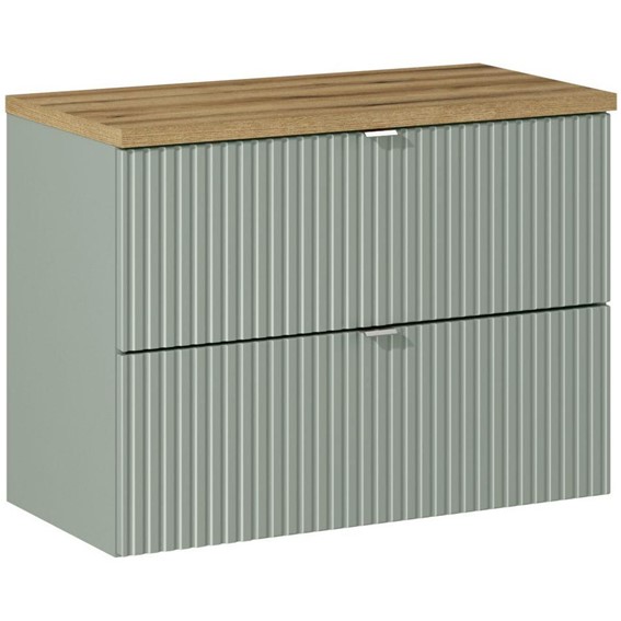Prezentowana kolekcja mebli to propozycja, która łączy nowoczesny design z klasyczną elegancją. Wykorzystanie poziomych frezowań na frontach, znanych również jako ryflowanie, nadaje meblom wyjątkowego charakteru, wprowadzając ruch i płynność do każdego wnętrza łazienki.Ten wyjątkowy odcień zieleni wprowadza do łazienki atmosferę spokoju i relaksu, tworząc przestrzeń, w której każdy detal ma znaczenie. Meble nie tylko upiększają łazienkę, ale także zwiększają jej funkcjonalność, oferując praktyczne rozwiązania przechowywania i elastyczność w aranżacji przestrzeni. Dzięki wysokiej jakości materiałom i precyzyjnemu wykonaniu, przedstawiona kolekcja mebli gwarantuje trwałość i niezawodność na lata.