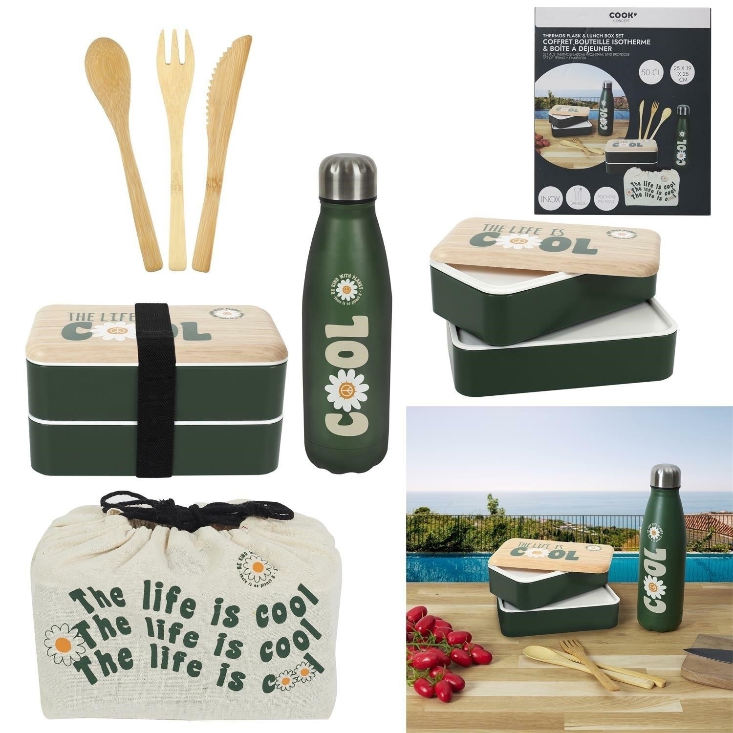 Zestaw lunchowy 4 częściowy w kolorze zielonym to doskonałe rozwiązanie dla osób, które cenią sobie zdrowe odżywianie i wygodę w codziennym życiu. W skład zestawu wchodzą: pojemnik na danie główne, butelka na napój,worek oraz sztućce, co czyni go kompleksowym rozwiązaniem do transportu posiłków. Wykonany z wysokiej jakości materiałów, zestaw jest trwały, odporny na działanie wysokich temperatur i łatwy do czyszczenia. Szczelne zamknięcia zapewniają świeżość jedzenia, a zielony kolor dodaje energii i stylu, sprawiając, że zestaw wyróżnia się na tle innych. To świetny wybór dla osób dbających o zdrowie i aktywny styl życia, a także doskonały pomysł na praktyczny prezent dla bliskich.