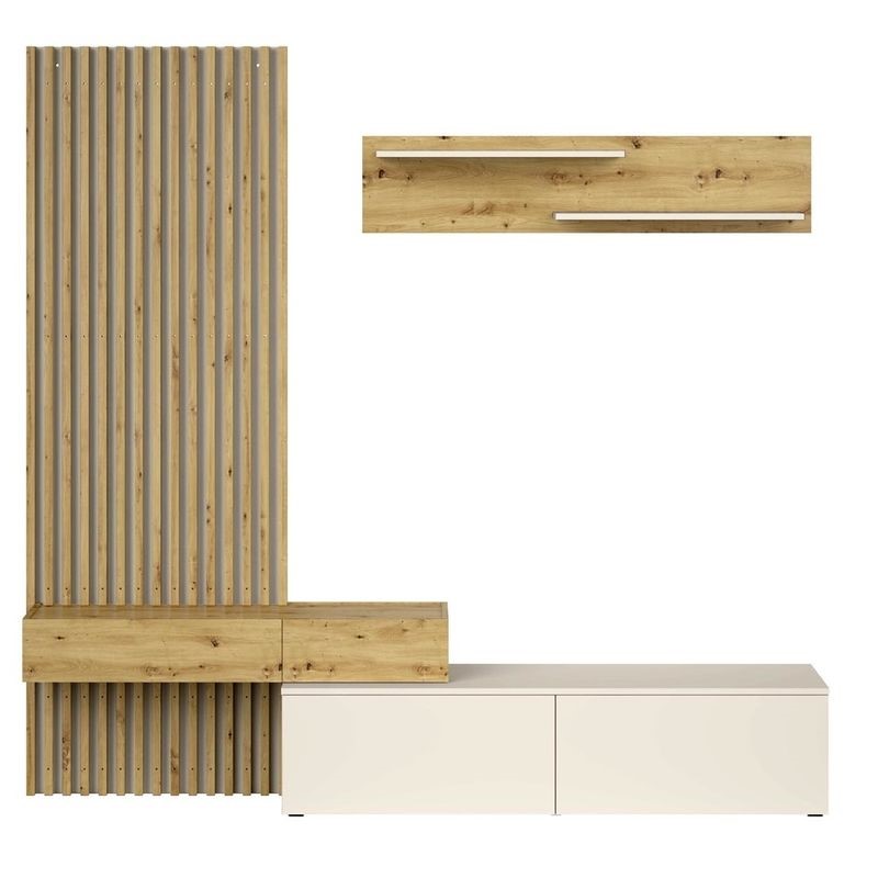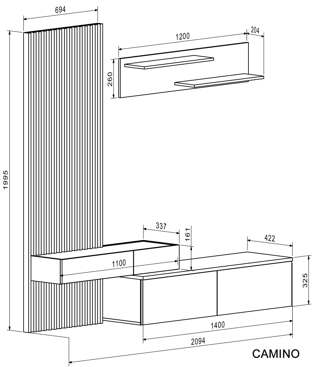 Zestaw CAMINO to nowoczesna kompozycja mebli zaprojektowana z myślą o spójnej i estetycznej aranżacji wnętrza. Prosta, elegancka forma brył oraz przemyślany układ elementów pozwalają na funkcjonalne zagospodarowanie przestrzeni bez chaosu wizualnego. Zestaw oferuje wygodne rozwiązania do przechowywania i codziennego użytkowania, zapewniając komfort oraz ergonomię. CAMINO doskonale sprawdza się w nowoczesnych, minimalistycznych oraz loftowych aranżacjach, tworząc uporządkowaną i harmonijną przestrzeń. To gotowe rozwiązanie dla osób, które cenią estetykę, praktyczność i spójny design.