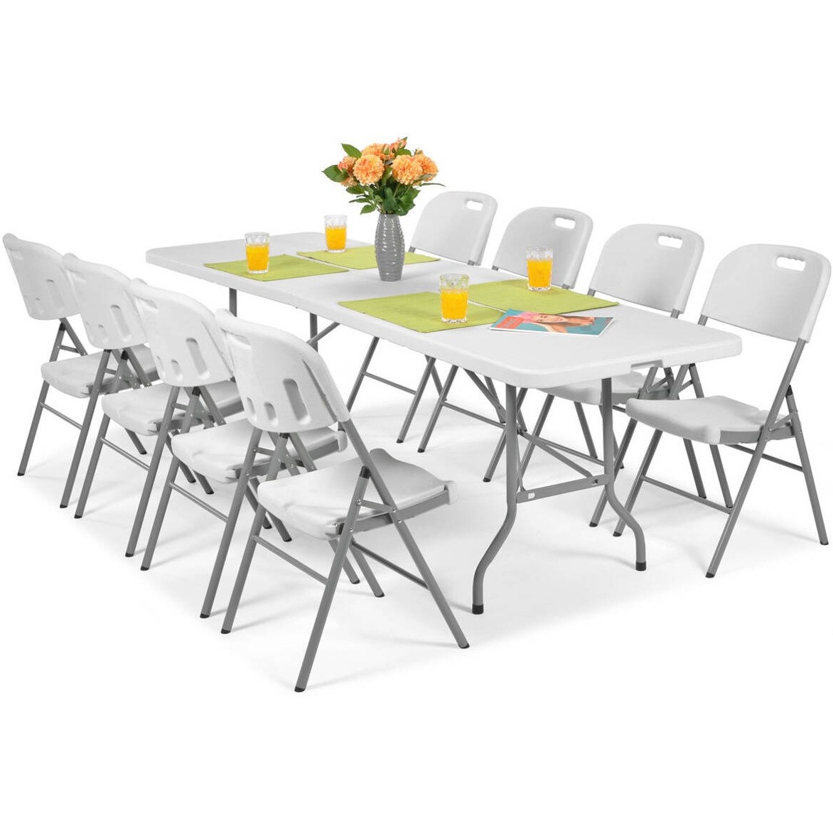 Praktyczny składany zestaw mebli ogrodowych w kolorze biało-szarym to funkcjonalne rozwiązanie idealne na przyjęcia, eventy, bankiety czy spotkania rodzinne. W skład kompletu wchodzi składany stół o długości 180 cm oraz cztery składane krzesła konferencyjne, co czyni go wygodnym zestawem dla 8 osób. Konstrukcja wykonana z trwałego, wodoodpornego tworzywa i metalu zapewnia stabilność, odporność na warunki atmosferyczne i łatwość w utrzymaniu czystości. Całość można szybko złożyć do kompaktowych rozmiarów – stół składa się w praktyczną walizkę, a krzesła można bezproblemowo przechowywać. Zestaw idealnie sprawdzi się zarówno w ogrodzie, na tarasie, jak i w zastosowaniach profesjonalnych – jako meble cateringowe lub konferencyjne.