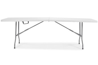 Praktyczny składany zestaw mebli ogrodowych w kolorze biało-szarym to funkcjonalne rozwiązanie idealne na przyjęcia, eventy, bankiety czy spotkania rodzinne. W skład kompletu wchodzi składany stół o długości 240 cm oraz cztery składane krzesła konferencyjne, co czyni go wygodnym zestawem dla 10 osób. Konstrukcja wykonana z trwałego, wodoodpornego tworzywa i metalu zapewnia stabilność, odporność na warunki atmosferyczne i łatwość w utrzymaniu czystości. Całość można szybko złożyć do kompaktowych rozmiarów – stół składa się w praktyczną walizkę, a krzesła można bezproblemowo przechowywać. Zestaw idealnie sprawdzi się zarówno w ogrodzie, na tarasie, jak i w zastosowaniach profesjonalnych – jako meble cateringowe lub konferencyjne.