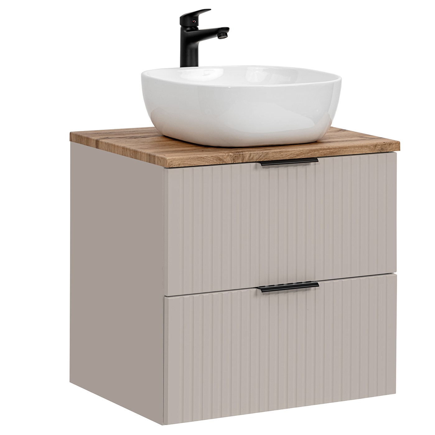 Prezentowana kolekcja mebli to nowoczesne połączenie elegancji i funkcjonalności, zaprojektowane z myślą o najbardziej wymagających użytkownikach. Wyróżnia się unikalnymi pionowymi frezowaniami we frontach i korpusie, które nadają meblom niepowtarzalny charakter i dynamikę. Dzięki tej wyjątkowej strukturze, meble wprowadzają do łazienki ruch i płynność, tworząc harmonijną i stylową przestrzeń. Nowoczesna kolorystyka oraz wyrafinowane detale czynią ją wyjątkową propozycją do każdej łazienki. Zestawy mebli wykonane są z wysokiej jakości materiałów, takich jak płyta laminowana i MDF, co zapewnia ich trwałość i odporność na wilgoć. Starannie dobrane komponenty oraz precyzyjne wykończenie gwarantują, że meble te będą służyć przez wiele lat, zachowując swój piękny wygląd i funkcjonalność. W zestawie znajduje się szafka z blatem i umywalka.