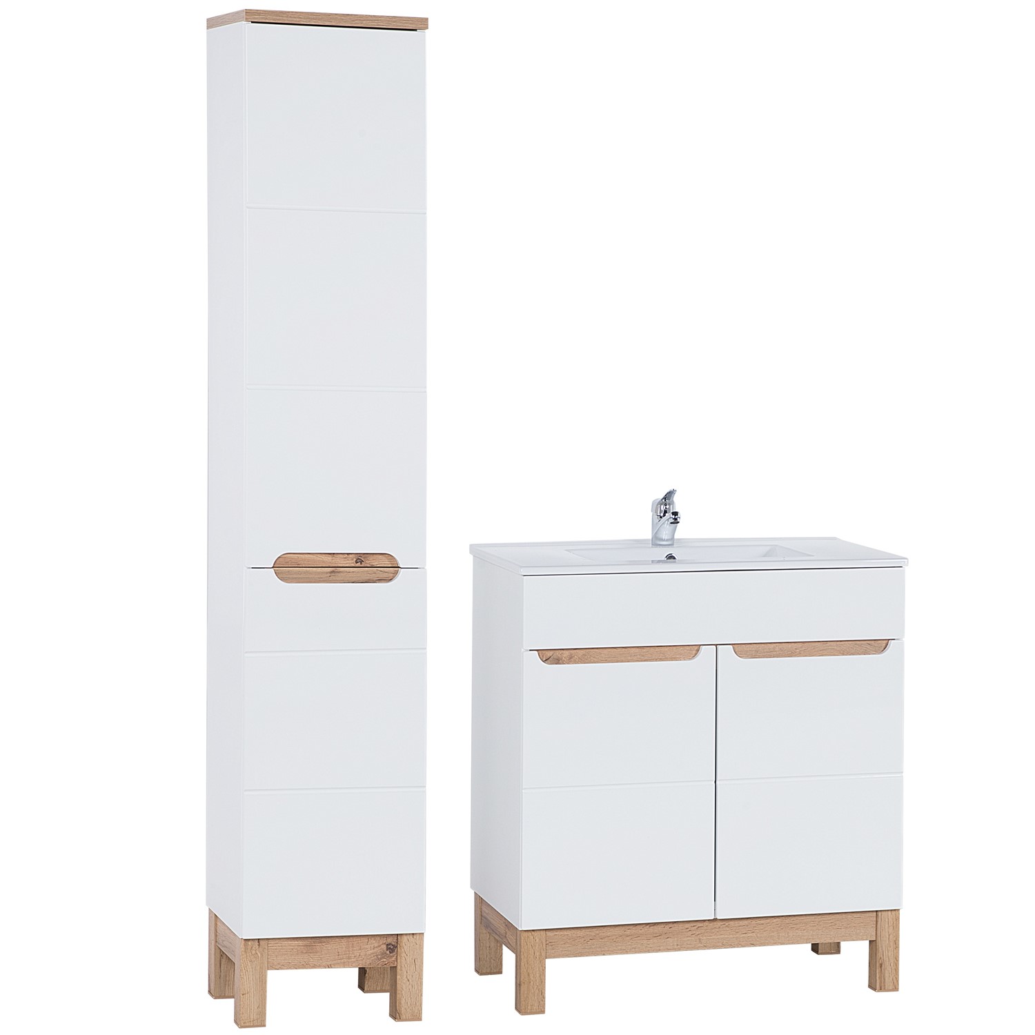 Prezentowana kolekcja mebli to esencja elegancji i funkcjonalności, idealna dla osób pragnących wprowadzić do swojej łazienki unikalny, stylowy klimat. Piękne, frezowane fronty nadają pomieszczeniu niepowtarzalny, przytulny klimat. Połączenie naturalnego drewna z białymi elementami tworzy harmonijny, ponadczasowy wygląd, który doskonale wpisuje się zarówno w nowoczesne, jak i klasyczne aranżacje łazienkowe. Solidne korpusy mebli gwarantują ich trwałość i odporność na codzienne użytkowanie. Wysokiej jakości materiały zapewniają, że meble będą służyć przez wiele lat, zachowując swój piękny wygląd i funkcjonalność.