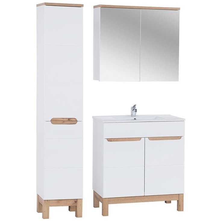 Prezentowana kolekcja mebli to esencja elegancji i funkcjonalności, idealna dla osób pragnących wprowadzić do swojej łazienki unikalny, stylowy klimat. Piękne, frezowane fronty nadają pomieszczeniu niepowtarzalny, przytulny klimat. Połączenie naturalnego drewna z białymi elementami tworzy harmonijny, ponadczasowy wygląd, który doskonale wpisuje się zarówno w nowoczesne, jak i klasyczne aranżacje łazienkowe. Solidne korpusy mebli gwarantują ich trwałość i odporność na codzienne użytkowanie. Wysokiej jakości materiały zapewniają, że meble będą służyć przez wiele lat, zachowując swój piękny wygląd i funkcjonalność.