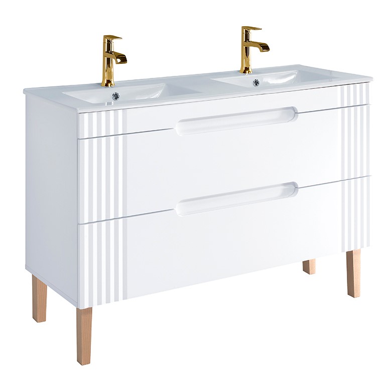Prezentowana kolekcja mebli to esencja elegancji i funkcjonalności, idealna dla osób pragnących wprowadzić do swojej łazienki unikalny, stylowy klimat. Piękne, frezowane fronty nadają pomieszczeniu niepowtarzalny, przytulny klimat. Połączenie naturalnego drewna z białymi elementami tworzy harmonijny, ponadczasowy wygląd, który doskonale wpisuje się zarówno w nowoczesne, jak i klasyczne aranżacje łazienkowe. Solidne korpusy mebli gwarantują ich trwałość i odporność na codzienne użytkowanie. Wysokiej jakości materiały zapewniają, że meble będą służyć przez wiele lat, zachowując swój piękny wygląd i funkcjonalność.
