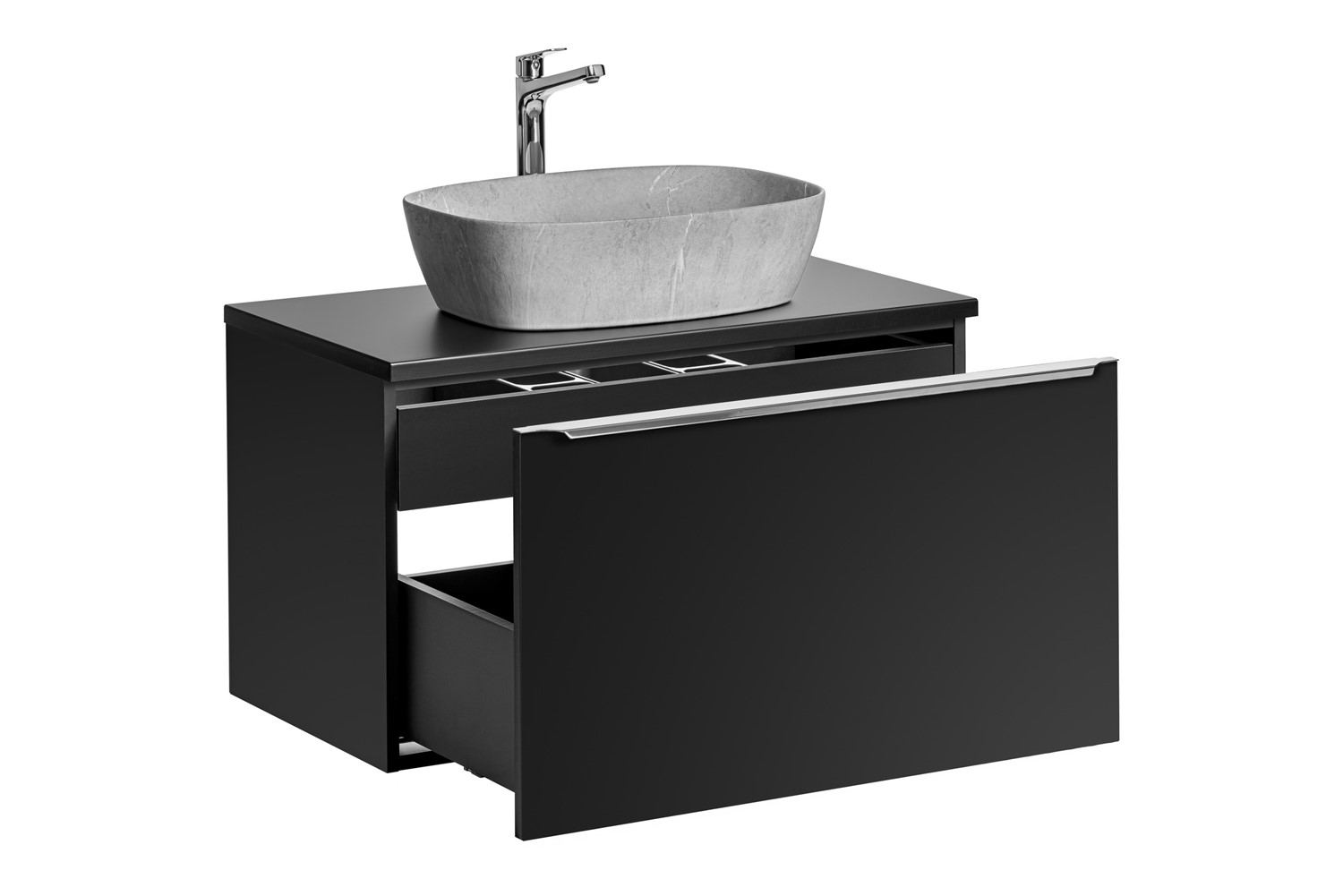 Prezentowana kolekcja mebli to doskonałe połączenie designu i solidności, zaprojektowana z myślą o nowoczesnych wnętrzach łazienkowych. Charakteryzuje się eleganckim, czarnym wykończeniem, które nadaje wnętrzu łazienki wyrafinowanego charakteru i odważnego stylu. Kolekcja ta została zaprojektowana z myślą o tych, którzy cenią sobie wysoką jakość wykonania oraz estetykę, która idzie w parze z praktycznością. Meble nie tylko upiększają łazienkę, ale także zwiększają jej funkcjonalność, oferując praktyczne rozwiązania przechowywania i elastyczność w aranżacji przestrzeni. Dzięki wysokiej jakości materiałom i precyzyjnemu wykonaniu, przedstawiona kolekcja mebli gwarantuje trwałość i niezawodność na lata.