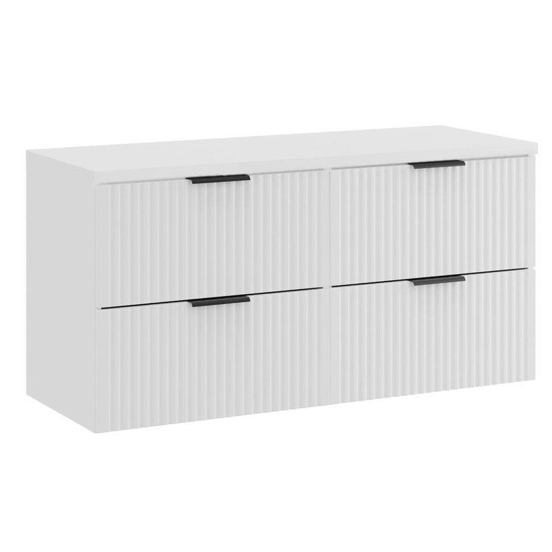 Zestaw meblowy o szerokości 120 cm to idealne rozwiązanie dla większych łazienek, gdzie liczy się zarówno funkcjonalność, jak i estetyka. Blat oferuje dużą powierzchnię roboczą, na której można postawić umywalkę nablatową lub inne akcesoria. Pojemne szafki i szuflady pomieszczą wszystkie niezbędne artykuły łazienkowe, pomagając utrzymać porządek. Prosty, nowoczesny design sprawia, że meble świetnie prezentują się w nowoczesnych i klasycznych aranżacjach. Dzięki starannemu wykonaniu i solidnym materiałom zestaw gwarantuje trwałość i komfort codziennego użytkowania.