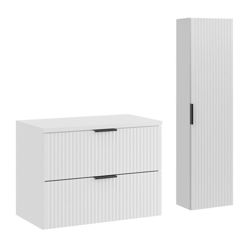 Zestaw meblowy o szerokości 80 cm z dopasowaną szafką wysoką to kompletny i funkcjonalny zestaw do każdej łazienki. Szafka podumywalkowa z szerokim blatem zapewnia wygodne miejsce do ustawienia umywalki nablatowej lub akcesoriów, a dodatkowy słupek ułatwia organizację przestrzeni – doskonały na ręczniki, środki czystości czy kosmetyki. Zestaw został zaprojektowany z myślą o ergonomii i estetyce: elegancka forma, nowoczesne wykończenia oraz ciche domykanie frontów to gwarancja komfortu i trwałości. Idealny wybór do średnich i większych łazienek, gdzie liczy się zarówno styl, jak i praktyczność.