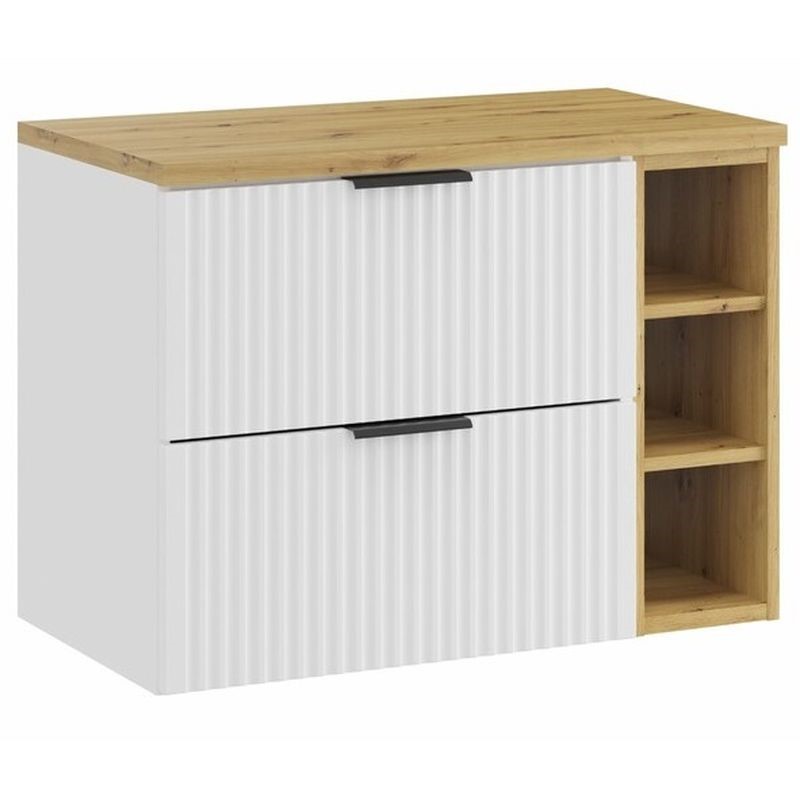 Zestaw meblowy z blatem o szerokości 80 cm to funkcjonalna baza do aranżacji nowoczesnej łazienki. W skład kompletu wchodzi elegancka szafka. Blat, który można dowolnie dopasować z umywalką nablatową, wykonany został z materiału odpornego na wilgoć i uszkodzenia. Szafka wyróżnia się minimalistyczną bryłą oraz solidnym wykonaniem, co pozwala na łatwe dopasowanie jej zarówno do wnętrz w stylu nowoczesnym, skandynawskim, jak i klasycznym. To idealna propozycja dla osób poszukujących mebla o uniwersalnym zastosowaniu, który można uzupełnić o wybraną umywalkę i dodatkowe elementy wyposażenia.