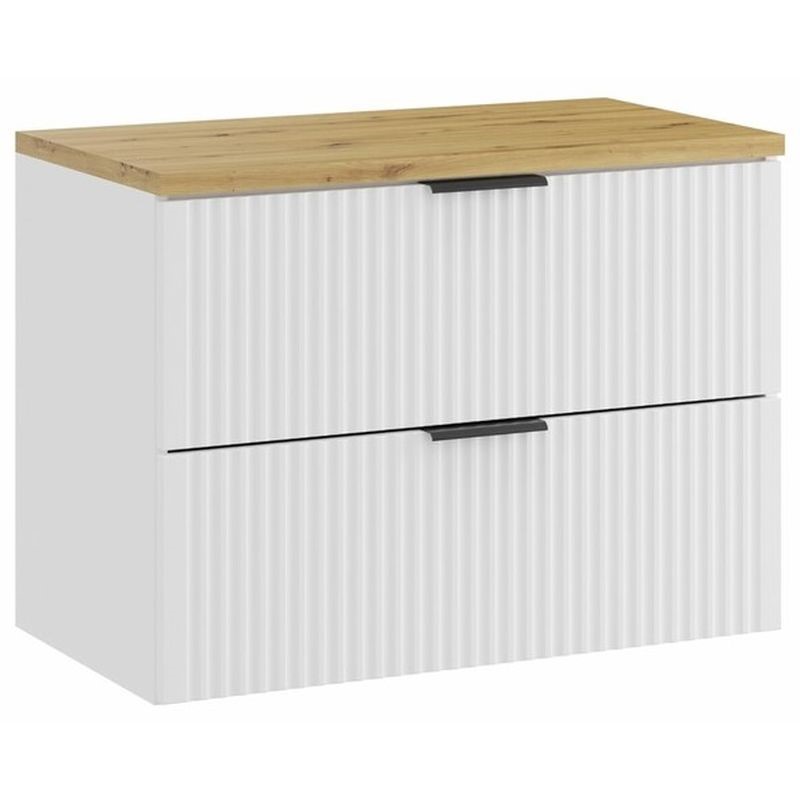 Zestaw meblowy CREMONA 80 cm to propozycja dla osób ceniących czystość formy i wygodę użytkowania. Kompaktowy, a zarazem pojemny, idealnie odnajduje się w mniejszych przestrzeniach, oferując jednocześnie funkcjonalną powierzchnię blatu. Subtelne linie i wyważone proporcje nadają wnętrzu elegancji, tworząc doskonałe tło dla umywalki nablatowej.