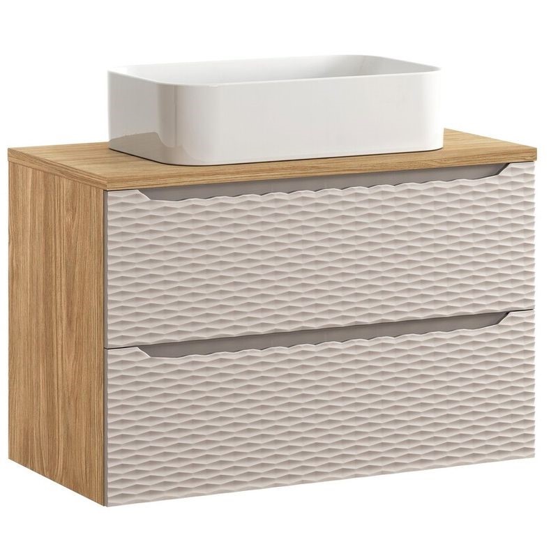 Meble łazienkowe z umywalką nablatową Kati to idealne połączenie estetyki i funkcji. Przemyślany projekt oferuje wygodną powierzchnię roboczą i miejsce do przechowywania, a delikatna linia mebli wprowadza do wnętrza subtelną elegancję. To zestaw, który dobrze odnajdzie się zarówno w mniejszych, jak i większych łazienkach.