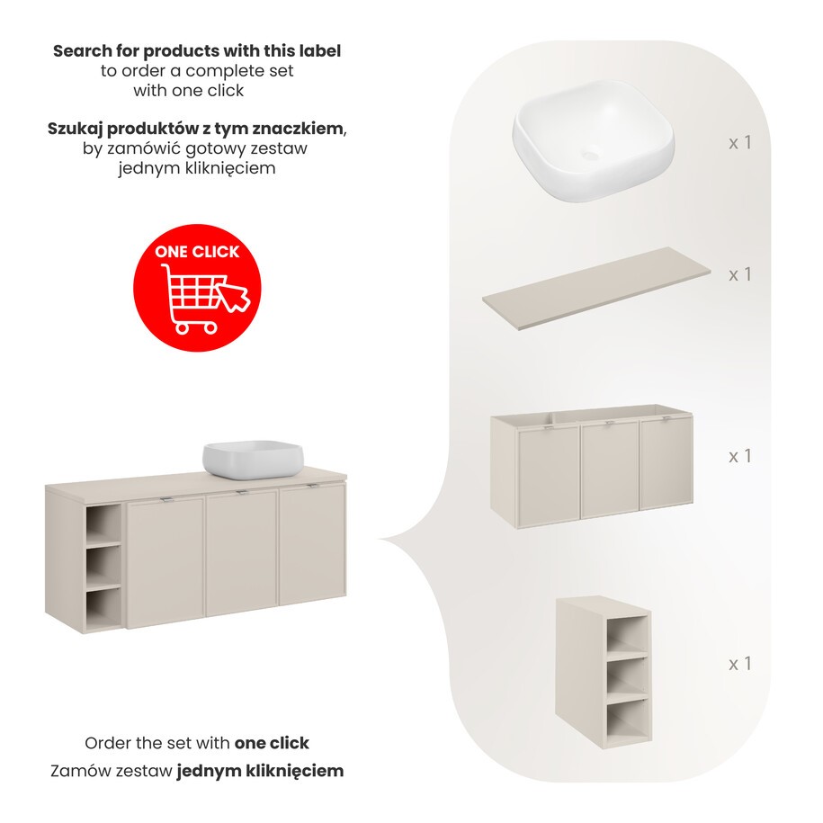 Zestaw meblowy o szerokości 140 cm z umywalką nablatową Nika to elegancka i funkcjonalna propozycja do przestronnych łazienek. Stylowa umywalka o delikatnej linii idealnie komponuje się z dużym blatem, który zapewnia mnóstwo miejsca na akcesoria. Uniwersalna forma mebla wpasowuje się w różne aranżacje – od klasycznych po nowoczesne. Praktyczna szafka dolna oferuje pojemne schowki na wszystkie niezbędne przedmioty. Idealny wybór dla osób ceniących komfort i estetykę.