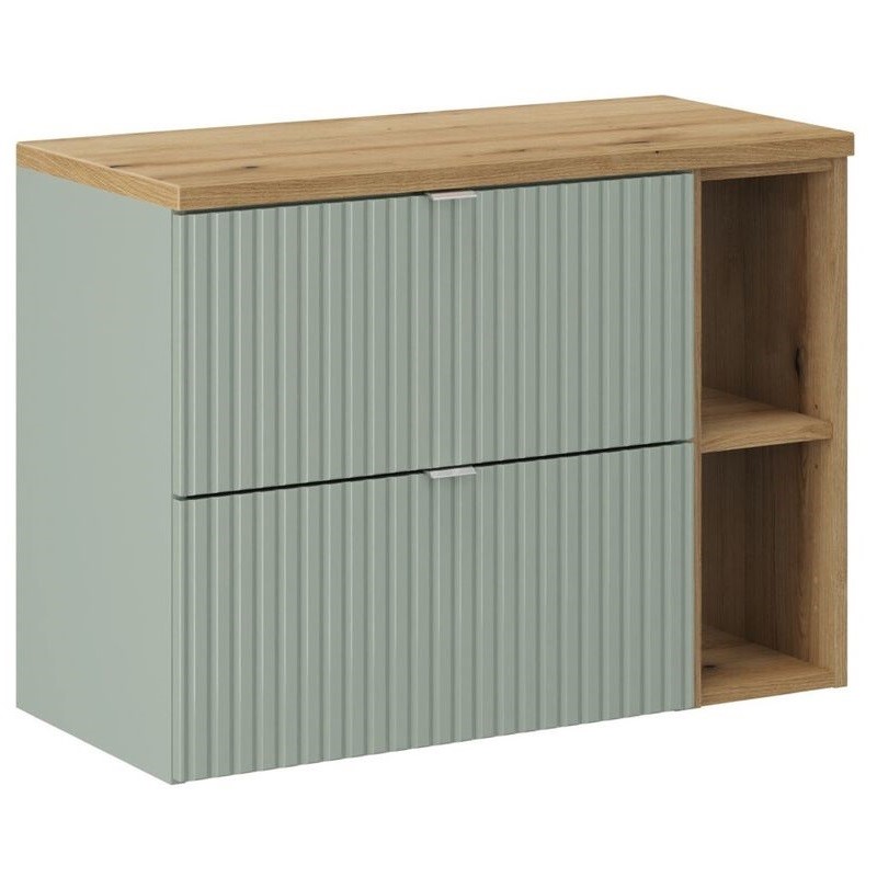 Zestaw meblowy CREMONA 80 cm to propozycja dla osób ceniących czystość formy i wygodę użytkowania. Kompaktowy, a zarazem pojemny, idealnie odnajduje się w mniejszych przestrzeniach, oferując jednocześnie funkcjonalną powierzchnię blatu. Subtelne linie i wyważone proporcje nadają wnętrzu elegancji, tworząc doskonałe tło dla umywalki nablatowej.