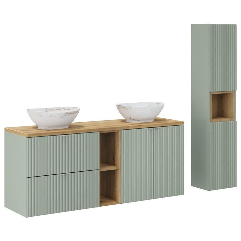 Zestaw meblowy z umywalkami PATI to kompleksowe rozwiązanie do łazienki, łączące funkcjonalność z nowoczesnym designem. Składa się z pojemnych szafek dolnych i wysokich idealnie dopasowanych do umywalki nablatowej lub meblowej, co zapewnia wygodę i estetykę. Przemyślane rozwiązania do przechowywania pomagają utrzymać porządek, a minimalistyczna forma wpisuje się w różne style wnętrz. To idealny wybór dla osób szukających gotowego, spójnego zestawu.