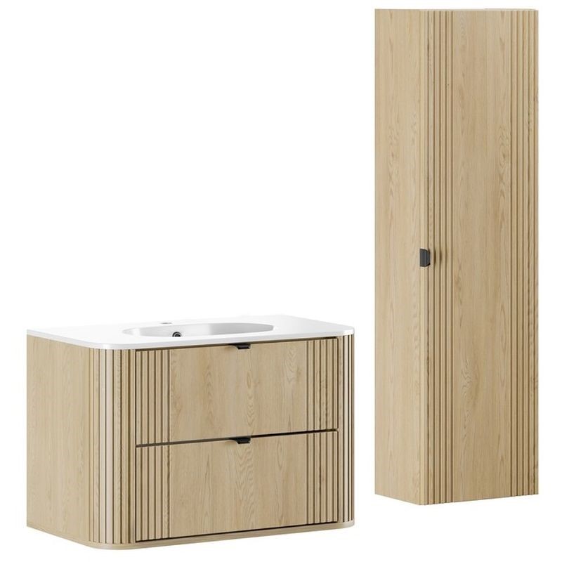 Zestaw o szerokości 80 cm z umywalką meblową Pure i szafką wysoką łączy funkcjonalność z estetyką. Idealny do mniejszych łazienek, gdzie liczy się każdy centymetr przestrzeni. Szafka wysoka zapewnia dodatkowe miejsce do przechowywania, a umywalka meblowa gwarantuje wygodę podczas codziennego użytkowania. Całość wykonana z dbałością o detale.