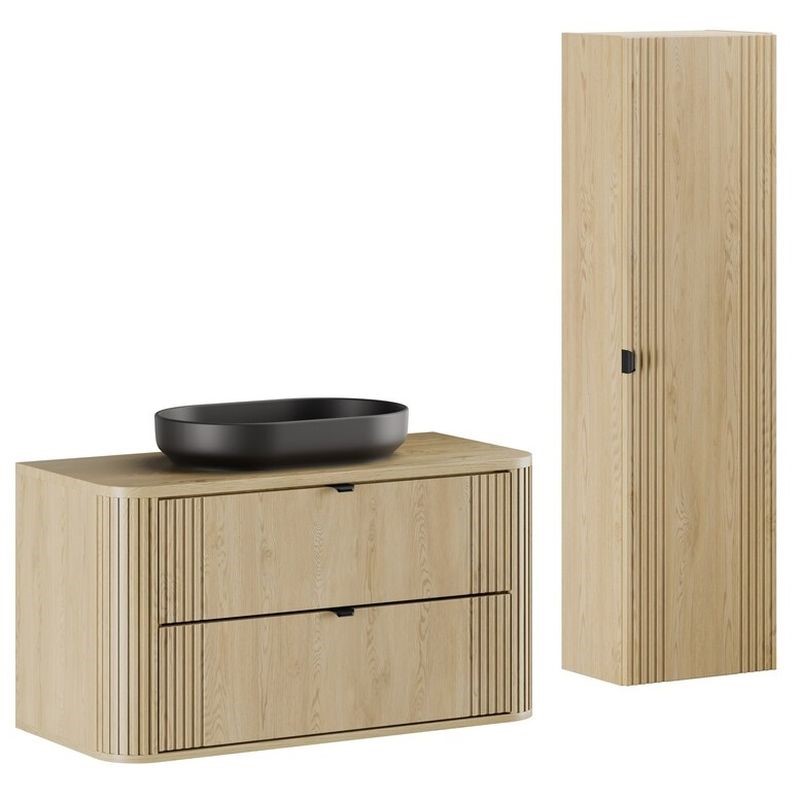 Zestaw meblowy z umywalką RIVER to kompleksowe rozwiązanie do łazienki, łączące funkcjonalność z nowoczesnym designem. Składa się z pojemnych szafek dolnych i wysokich idealnie dopasowanych do umywalki nablatowej lub meblowej, co zapewnia wygodę i estetykę. Przemyślane rozwiązania do przechowywania pomagają utrzymać porządek, a minimalistyczna forma wpisuje się w różne style wnętrz. To idealny wybór dla osób szukających gotowego, spójnego zestawu.