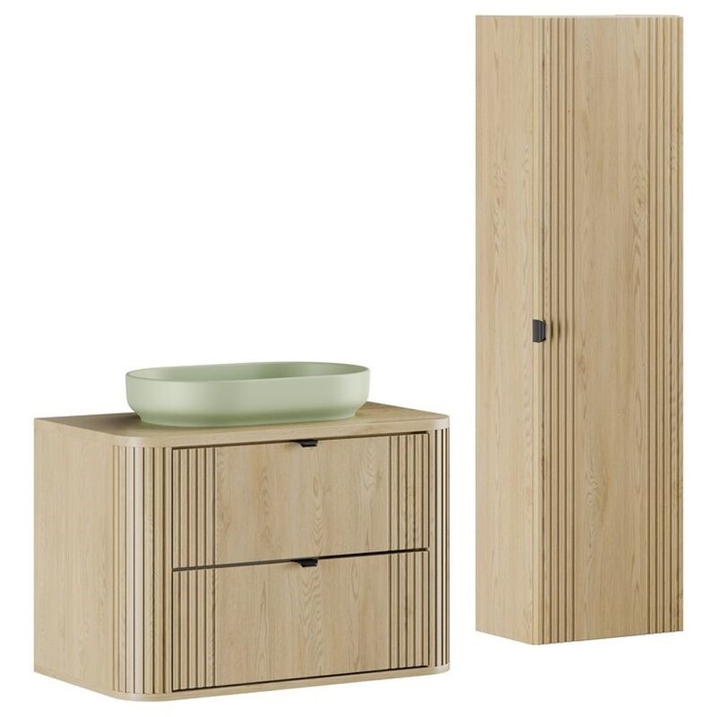 Zestaw meblowy z umywalką RIVER to kompleksowe rozwiązanie do łazienki, łączące funkcjonalność z nowoczesnym designem. Składa się z pojemnych szafek dolnych i wysokich idealnie dopasowanych do umywalki nablatowej lub meblowej, co zapewnia wygodę i estetykę. Przemyślane rozwiązania do przechowywania pomagają utrzymać porządek, a minimalistyczna forma wpisuje się w różne style wnętrz. To idealny wybór dla osób szukających gotowego, spójnego zestawu.