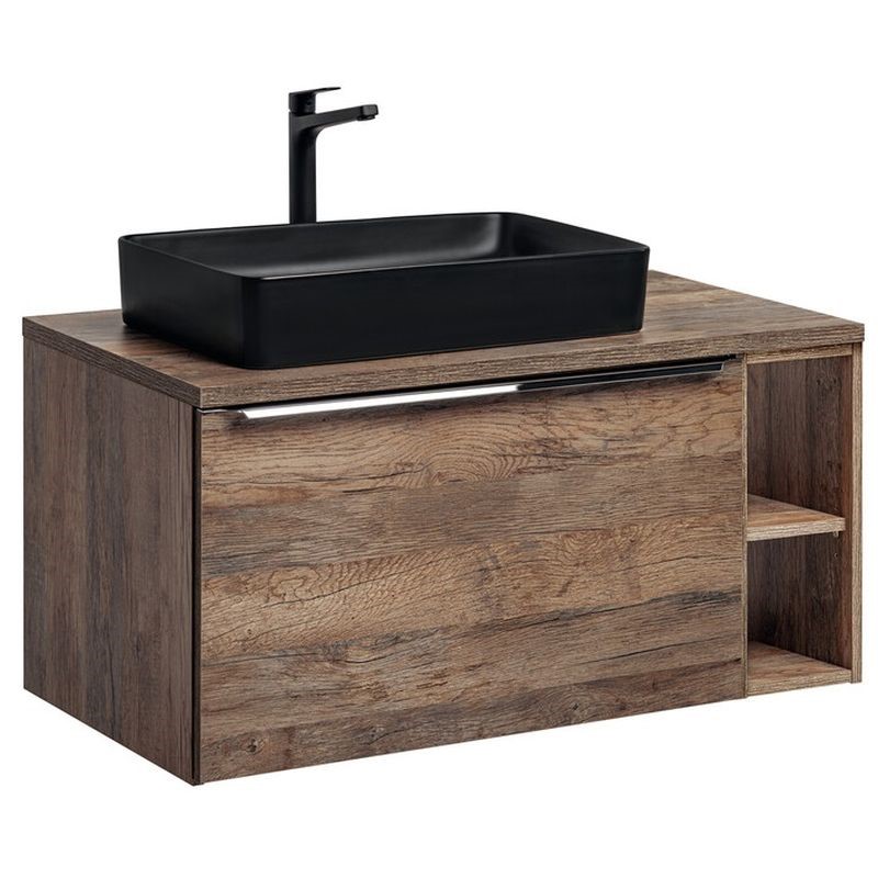 Zestaw meblowy z umywalką nablatową Slim to połączenie funkcjonalnej bryły z subtelną estetyką. Duży blat roboczy w połączeniu z elegancką umywalką tworzy spójną i ergonomiczną całość. Zestaw znakomicie sprawdzi się w nowoczesnych aranżacjach, podkreślając minimalistyczny styl łazienki.