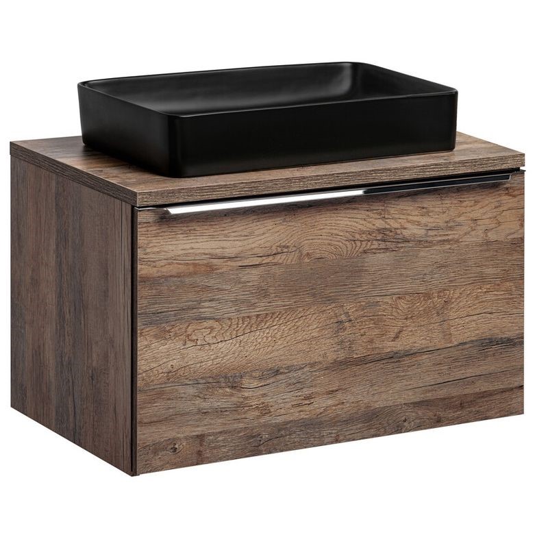 Zestaw meblowy z umywalką nablatową Slim o szerokości 80 cm przyciąga wzrok oryginalną stylistyką i kontrastowym wykończeniem. To idealne rozwiązanie dla osób szukających funkcjonalności zamkniętej w designerskiej formie. Blat zapewnia dodatkową przestrzeń roboczą, a pojemna szafka umożliwia wygodne przechowywanie niezbędnych akcesoriów łazienkowych.