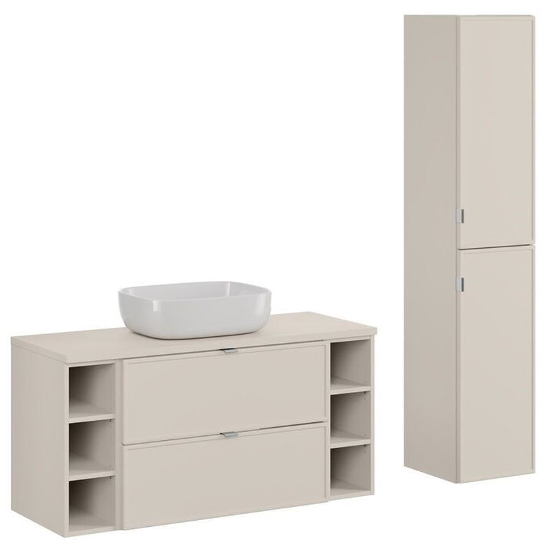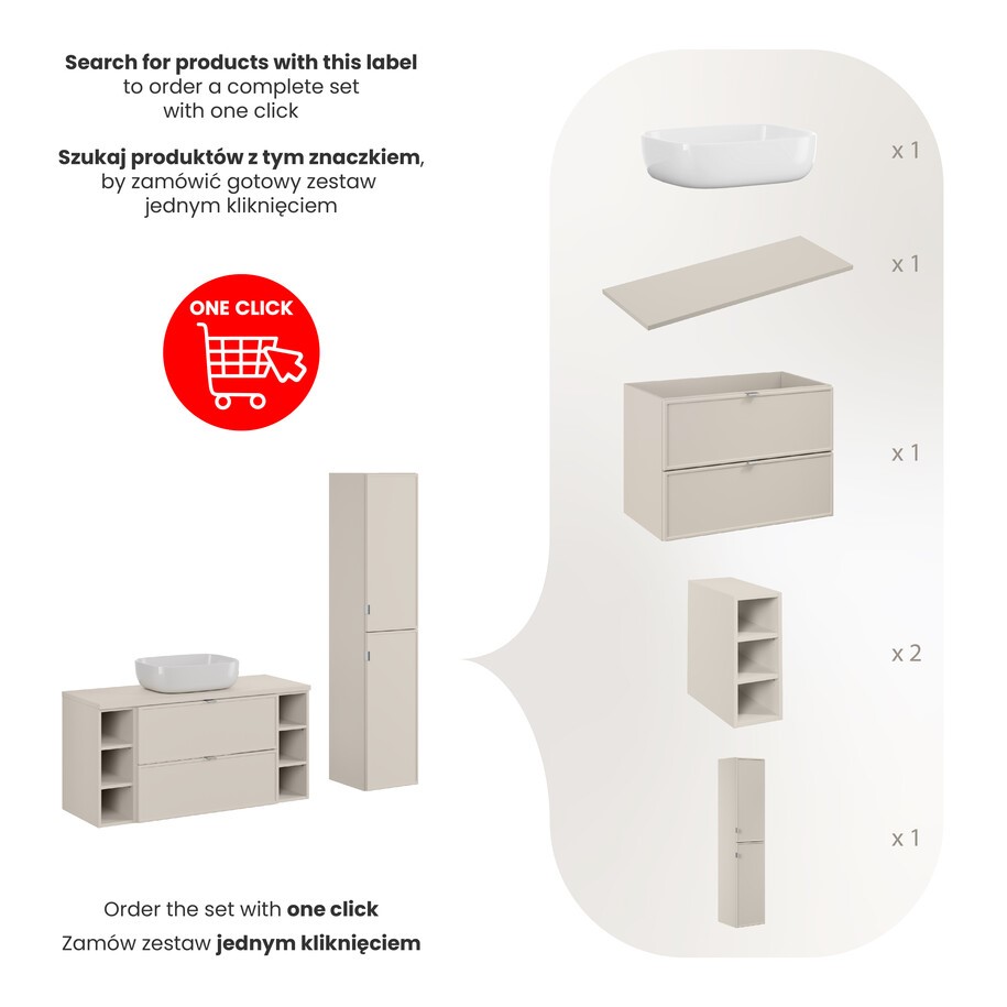 Zestaw meblowy z umywalką NIKA to kompleksowe rozwiązanie do łazienki, łączące funkcjonalność z nowoczesnym designem. Składa się z pojemnych szafek dolnych i wysokich idealnie dopasowanych do umywalki nablatowej lub meblowej, co zapewnia wygodę i estetykę. Przemyślane rozwiązania do przechowywania pomagają utrzymać porządek, a minimalistyczna forma wpisuje się w różne style wnętrz. To idealny wybór dla osób szukających gotowego, spójnego zestawu.