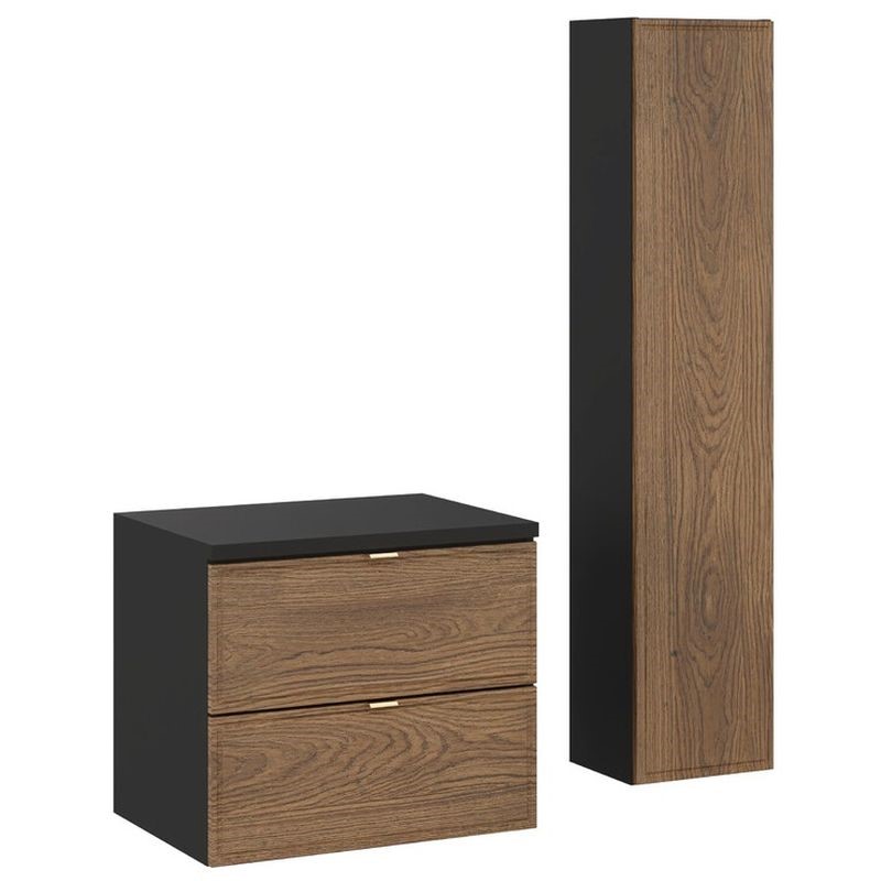 Zestaw meblowy o szerokości 60 cm, dostępny w trzech modnych wykończeniach – dąb, cashmere i biały – to idealna propozycja do nowoczesnych łazienek. Prosty blat połączono z pojemną dolną szafką oraz smukłą szafką wysoką, tworząc praktyczny zestaw do przechowywania codziennych akcesoriów. Uniwersalne kolory i minimalistyczny design sprawiają, że meble z łatwością dopasują się do różnych aranżacji wnętrz. To doskonały wybór dla osób, które cenią funkcjonalność, estetykę i porządek.