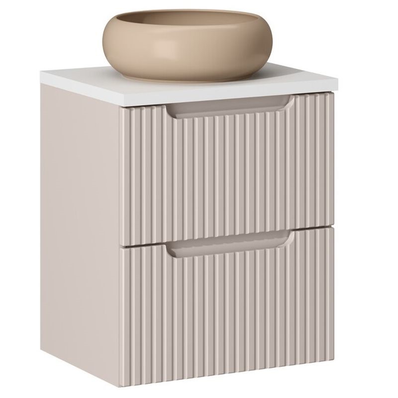 Zestaw meblowy o szerokości 50 cm to idealne rozwiązanie do małych łazienek lub toalet. Składa się z dolnej szafki z blatem oraz eleganckiej umywalki nablatowej Wiki o kompaktowych wymiarach. Szafka pomieści najważniejsze drobiazgi, takie jak kosmetyki, środki czystości czy akcesoria do pielęgnacji. Naturalny wygląd blatu i nowoczesna forma umywalki sprawiają, że całość prezentuje się lekko i estetycznie. Zestaw doskonale łączy funkcjonalność z nowoczesnym stylem, wpisując się w aktualne trendy wnętrzarskie.