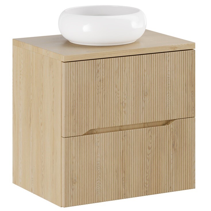 Zestaw meblowy o szerokości 60 cm z umywalką nablatową Wiki to doskonałe rozwiązanie do mniejszych łazienek, gdzie liczy się każdy centymetr przestrzeni. Praktyczny blat pozwala wygodnie ustawić kosmetyki lub akcesoria łazienkowe, a nowoczesna forma umywalki nablatowej podkreśla minimalistyczny charakter zestawu. Szafka pod umywalką oferuje funkcjonalne miejsce do przechowywania. Dzięki estetycznemu wykończeniu meble idealnie komponują się z różnymi aranżacjami łazienek.