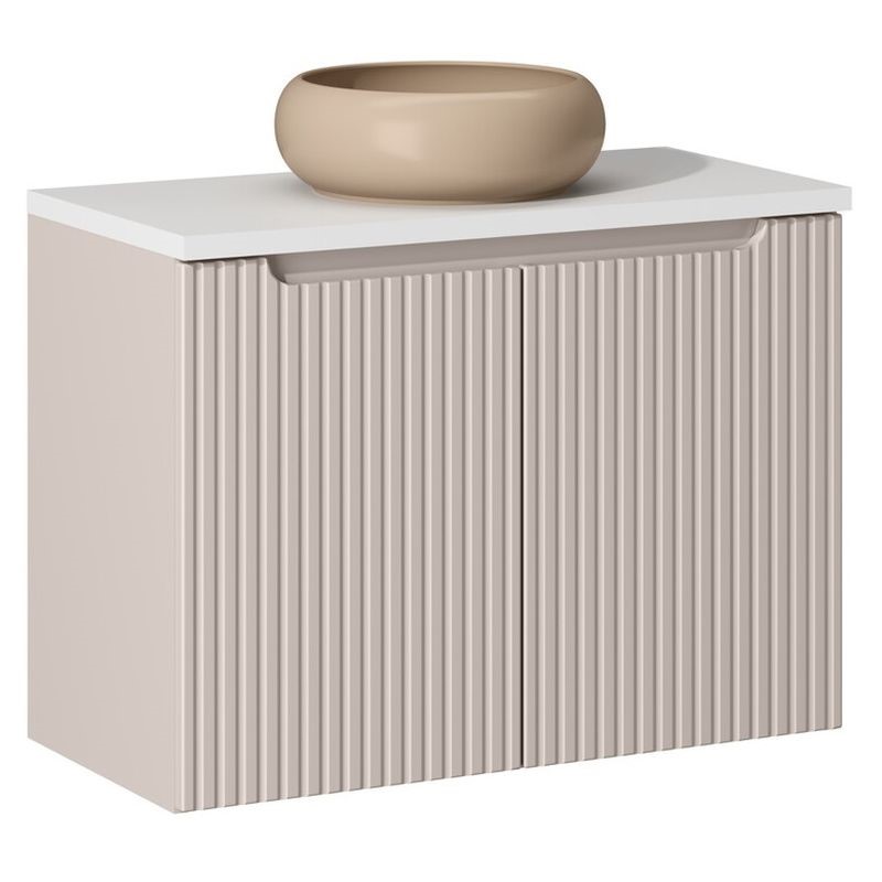 Zestaw meblowy o szerokości 80 cm z blatem i umywalką nablatową Wiki to funkcjonalne rozwiązanie, które sprawdzi się zarówno w mniejszych, jak i średnich łazienkach. Praktyczny blat zwiększa powierzchnię roboczą, a kompaktowa umywalka pozwala zaoszczędzić miejsce bez rezygnacji z komfortu. Nowoczesne wzornictwo i jasne kolory dopełniają eleganckiego charakteru zestawu.