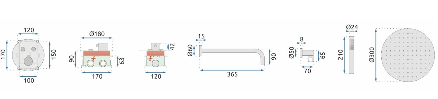 Zestawy prysznicowe podtynkowe: Montowane w ścianie, zapewniają estetyczny i nowoczesny wygląd, z widocznymi jedynie wylewkami i uchwytami.