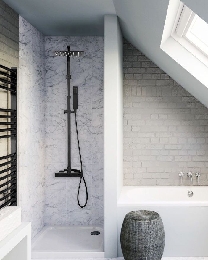 Mydelniczki i półki: Ułatwiają organizację kosmetyków i akcesoriów prysznicowych.