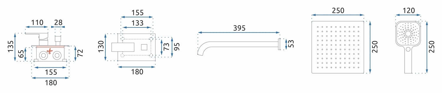 Zestawy prysznicowe podtynkowe: Montowane w ścianie, zapewniają estetyczny i nowoczesny wygląd, z widocznymi jedynie wylewkami i uchwytami.
