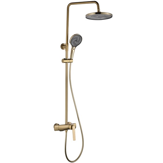 Mosiądz: Trwały i elegancki, często stosowany w klasycznych zestawach prysznicowych.