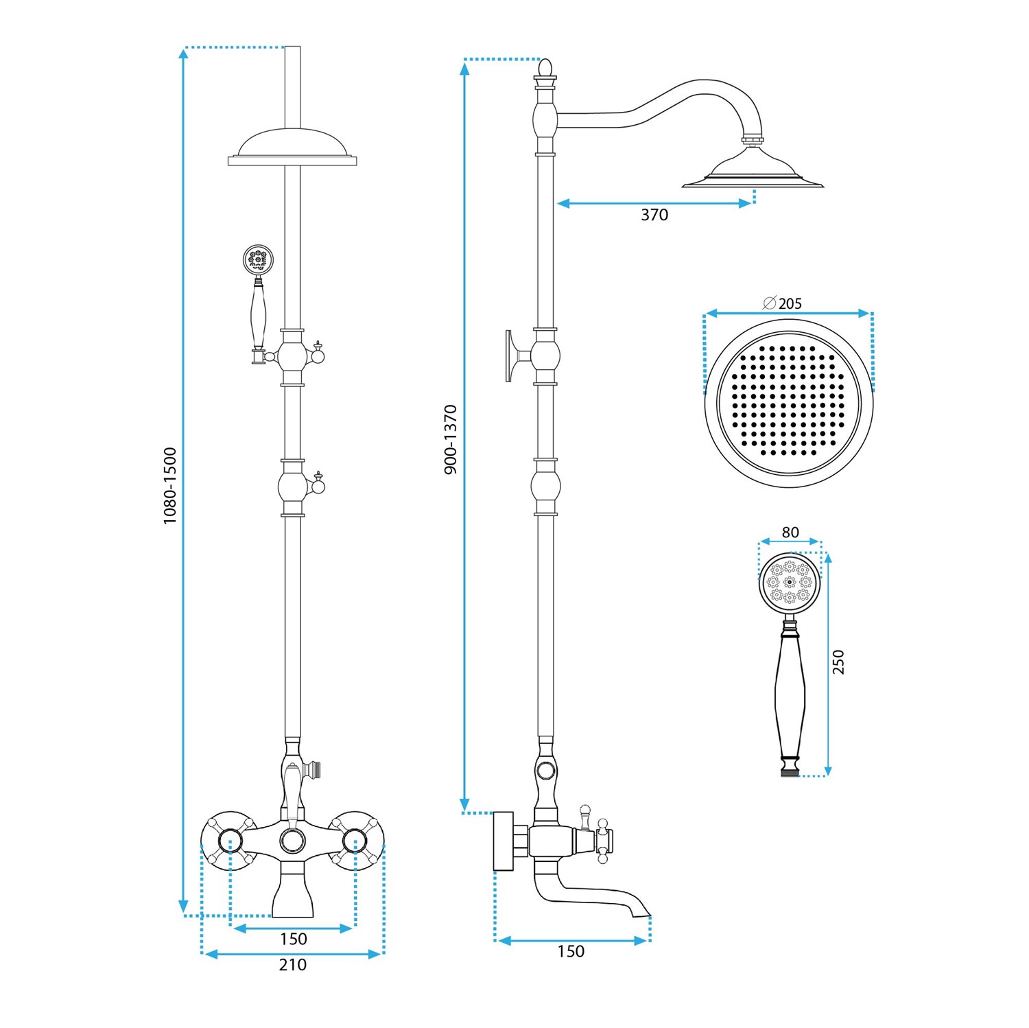 Zestaw Natryskowy RETRO Czarny Przecierany
