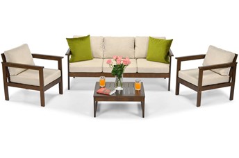 Zestaw ogrodowy "Bella" dla 5 osób w kolorach brązowym i beżowym to elegancka i komfortowa opcja do każdej przestrzeni zewnętrznej. Zestaw składa się z jednego dużego stołu i wygodnych krzeseł z miękkimi, beżowymi poduszkami, które zapewniają wygodę podczas siedzenia. Meble wykonane są z trwałych materiałów odpornych na warunki atmosferyczne, co czyni je idealnymi na taras, do ogrodu czy na patio. Brązowa konstrukcja z beżowymi akcentami tworzy ciepłą i zapraszającą atmosferę, idealną do rodzinnych spotkań czy przyjęć w ogrodzie.