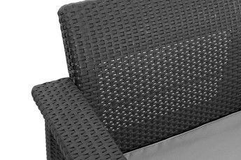 Meble ogrodowe CORFU FIESTA II ze stołem jadalnym MELODY, dwoma fotelami i dwiema sofami. Duży zestaw ogrodowy CORFU FIESTA dla sześciu osób, składający się ze stołu, dwóch foteli i dwóch sof. Świetnie sprawdzi się podczas grillowania i innych spotkań towarzyskich w ogrodzie. To dobry wybór na duże patio, balkon lub taras, werandę lub oranżerię. Seria mebli wykonana jest z materiału odpornego na warunki atmosferyczne i promieniowanie UV. Mebel jest trwały i stabilny, dzięki czemu można go z powodzeniem użytkować przez kilka lat, nie martwiąc się o brzydki wygląd z upływem czasu.