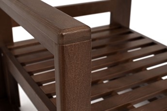 Drewniany zestaw ogrodowy MALTA o klasycznym kształcie dla 5 osób. W skład zestawu wchodzi sofa 3-osobowa, dwa fotele i niski stolik kawowy oraz grube poduszki na krzesłach i oparciach. Meble z naturalnego drewna są idealne do wnętrz boho i rustykalnych. Nowoczesna sofa ogrodowa w minimalistycznym stylu skandynawskim to połączenie naturalnych materiałów i klasycznego kształtu ławki. Drewniane meble doskonale sprawdzą się w nasłonecznionych częściach ogrodu, tarasu czy balkonu. Funkcjonalne fotele są bardzo wygodne i stabilne, posiadają ryflowane siedziska, które nawet po zdjęciu poduszek wyglądają bardzo elegancko. Dopełnieniem zestawu jest niska ławka, która może służyć jako podnóżek. Ciemnobrązowe drewniane ramy pięknie komponują się z jasnymi poduszkami. Konstrukcja jest bardzo wytrzymała dzięki wewnętrznym nóżkom, więc maksymalne obciążenie na siedzisko to 120 kg. Meble MALTA wykonane są z wysokiej jakości drewna, impregnowanego i malowanego specjalną farbą odporną na warunki atmosferyczne i pleśń. Wyraźna struktura drewna nadaje niepowtarzalny charakter aranżacji balkonów, tarasów czy ogrodów.