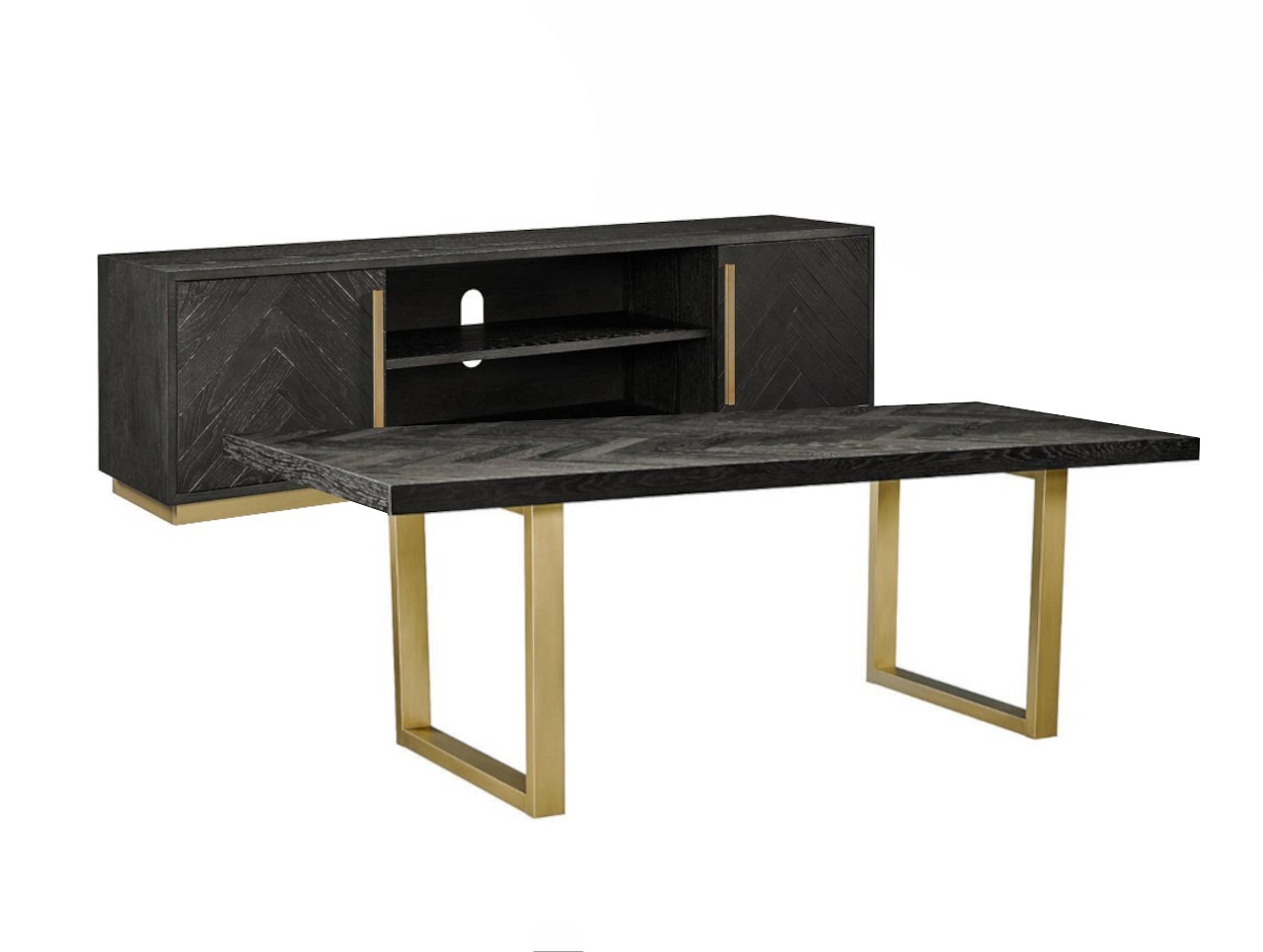 Głęboki odcień czerni, blaty i fronty z intarsją oraz widoczna struktura drewna to charakterystyczne motywy w meblach serii Seville. Mosiądz nie jest jedynie dodatkiem w postaci uchwytów czy nóżek. Współtworzy meble dodając im nowoczesnego wyglądu. Prosta forma i geometryczne bryły idealnie pasują do wnętrz zarówno nowoczesnych jak i klasycznych, a dzięki elementom ze wzorem w jodełkę dodają akcent stylu retro. Wysoka jakość wykonania i oryginalny design robi wrażenie nawet na koneserach sztuki meblarskiej.
