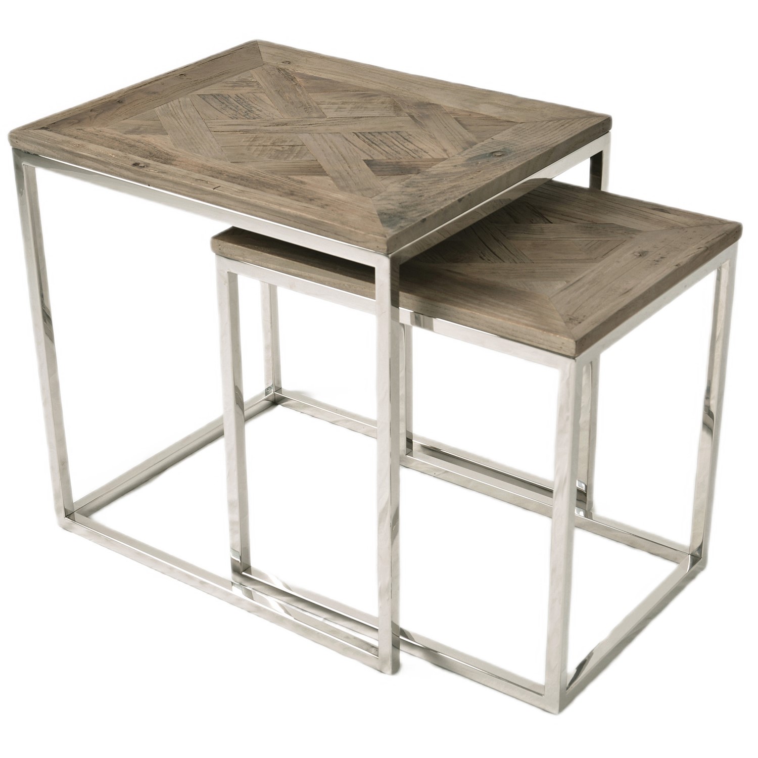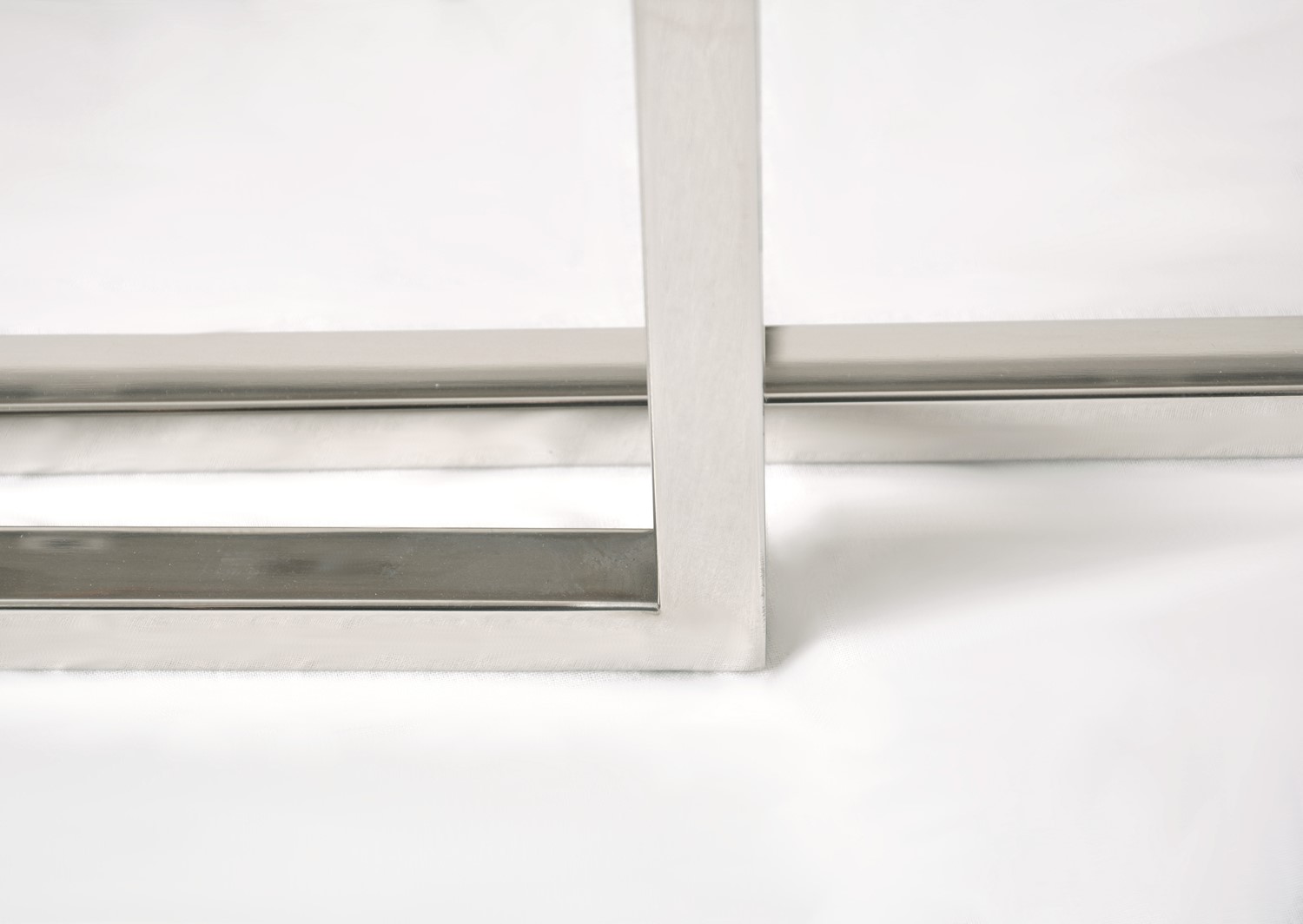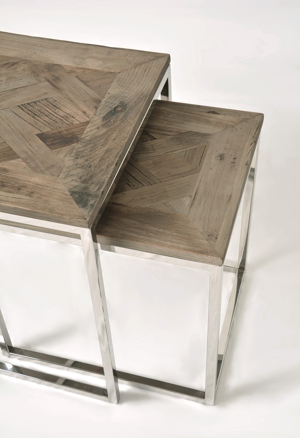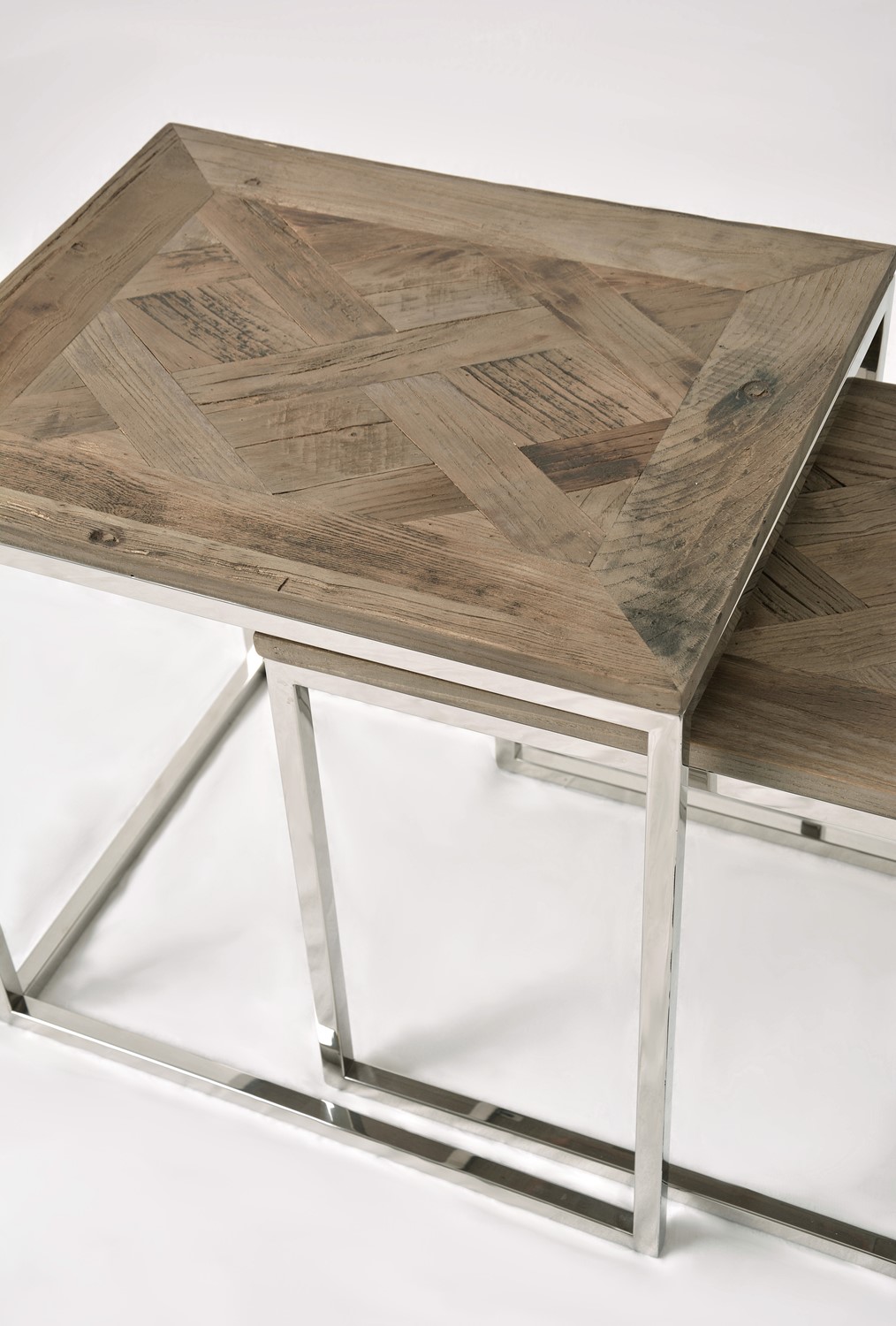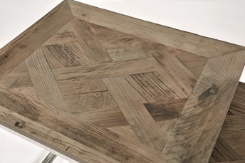 Stylowy zestaw stolików na ramie ze stali nierdzewnej w stylu glamour to połączenie elegancji i nowoczesności. Ich wyjątkowy design sprawia, że są nie tylko funkcjonalnymi meblami, ale także pięknymi elementami dekoracyjnymi, które dodają przestrzeni wyjątkowego charakteru. Ramę stolików wykonano ze stali nierdzewnej, co nadaje im solidności i wytrzymałości, jednocześnie zachowując nowoczesny wygląd. Stalowa konstrukcja idealnie komponuje się ze stylem glamour, dodając im elegancji i blasku. Blaty stolików wykonane są z wysokiej jakości szczotkowanego drewna recyklingowego, co podkreśla ekologiczny charakter mebli oraz nadaje im niepowtarzalnego, rustykalnego uroku. Ich ciemny, naturalny kolor z delikatnym bieleniem tworzy kontrast z błyszczącą stalą nierdzewną, co sprawia, że stoliki są zarówno subtelne, jak i wyraziste.