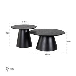 Ten nowoczesny zestaw jest niezwykle funkcjonalny – stoliki można używać zarówno razem, jak i pojedynczo, co umożliwia różne aranżacje w zależności od potrzeb i dostępnej przestrzeni. Idealnie nadają się do salonu, biura, czy nawet jako eleganckie stoliki boczne w sypialni.