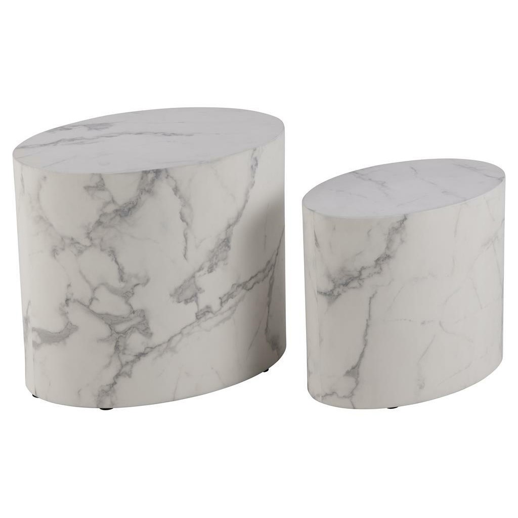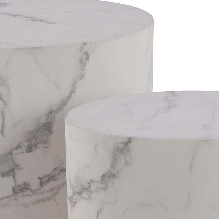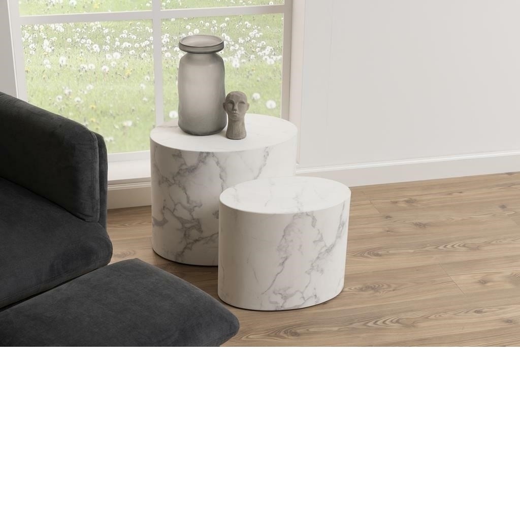 Zestaw stolików kawowych MICE w kolorze białego marmuru to doskonały wybór dla miłośników elegancji i nowoczesnego designu. Składa się z dwóch stolików o różnych rozmiarach, co pozwala na wszechstronne wykorzystanie w salonie. Ich blaty wykonane są z wysokiej jakości materiału , imitującego marmur, co nadaje im luksusowy wygląd, a jednocześnie zapewnia łatwość w utrzymaniu czystości. Minimalistyczny styl sprawia, że idealnie wpasują się w różne aranżacje wnętrz, od skandynawskiego po industrialny. Można je ustawiać obok sofy lub używać jako dodatkowej przestrzeni do odkładania napojów i przekąsek.
