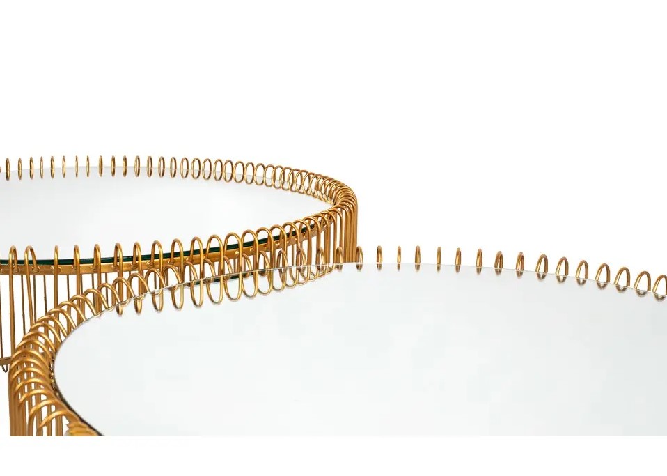 Szklane, lustrzane blaty w połączeniu z metalowym wykończeniem z mosiądzu sprawiają, że te stoliki doskonale odnajdą się w nowoczesnych i awangardowych wnętrzach, dodając im wyrafinowanego uroku.
