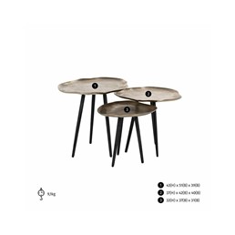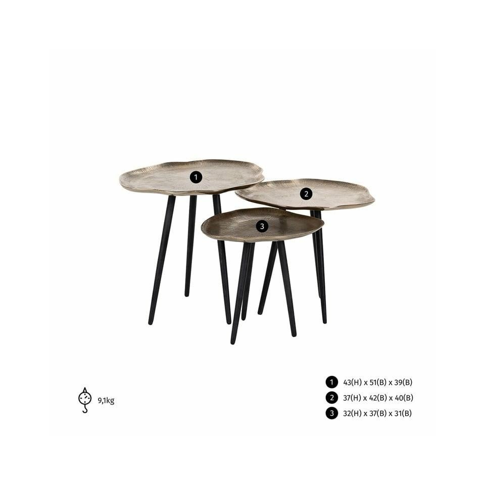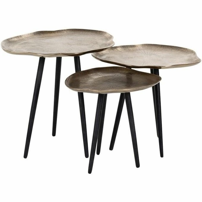 RICHMOND prezentuje uroczy zestaw stolików VOLENTA marki Richmond Interiors, które są nie tylko funkcjonalne, ale także inspirują się pięknem natury, doskonale komponując się z różnymi stylami wnętrz. Blaty aluminiowe przypominają delikatne liście lilii wodnej, nadając stolikom lekkości i subtelności. Ich eleganckie wykończenie w antycznym złocie dodaje imponującej finezji. Kontrastując z nimi, solidna podstawa wykonana z mocnego metalu w kolorze czarnym nadaje stolikom VOLENTA wyrazistego charakteru. Zestaw VOLENTA doskonale sprawdzi się zarówno jako całość, tworząc centralny punkt w aranżacji wnętrza, jak i osobno, umożliwiając elastyczną aranżację przestrzeni. To nie tylko stoliki kawowe, ale także wyjątkowe dzieła sztuki, które wniosą do Twojego domu nutkę naturalnego piękna i elegancji.