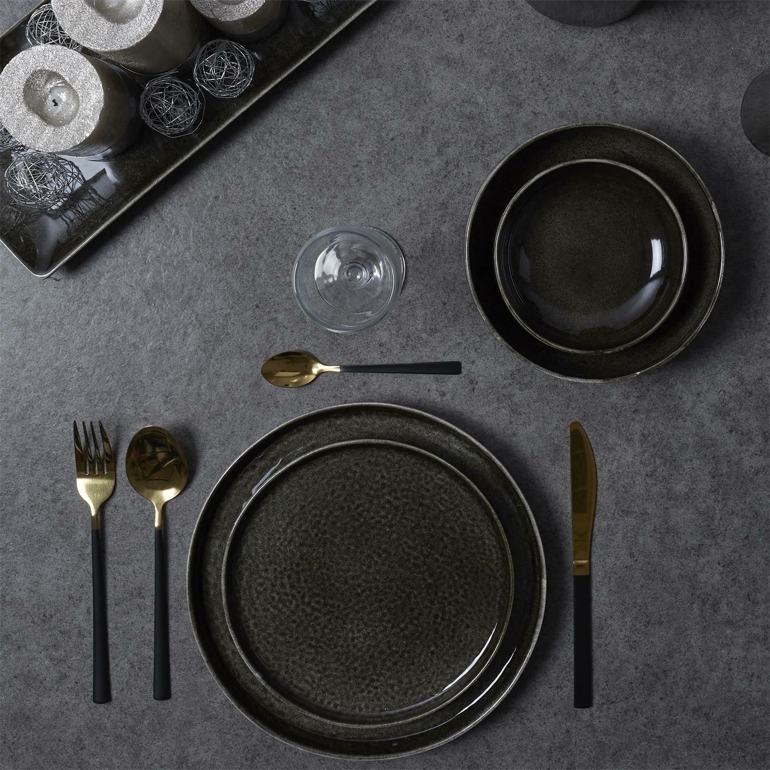 Zestaw sztućców CERISE 16szt Złotoczarne to elegancka kolekcja, która doda blasku każdemu stołowi. W skład zestawu wchodzą widelce, noże, łyżki oraz łyżeczki, które są idealne na codzienne posiłki oraz wyjątkowe okazje. Wykonane z wysokiej jakości stali nierdzewnej, sztućce są odporne na korozję i łatwe w pielęgnacji. Złotoczarne wykończenie nadaje im luksusowy charakter, a nowoczesny design sprawia, że świetnie komponują się z różnymi stylami nakryć stołowych. To doskonały wybór dla osób ceniących estetykę i funkcjonalność w swojej kuchni.