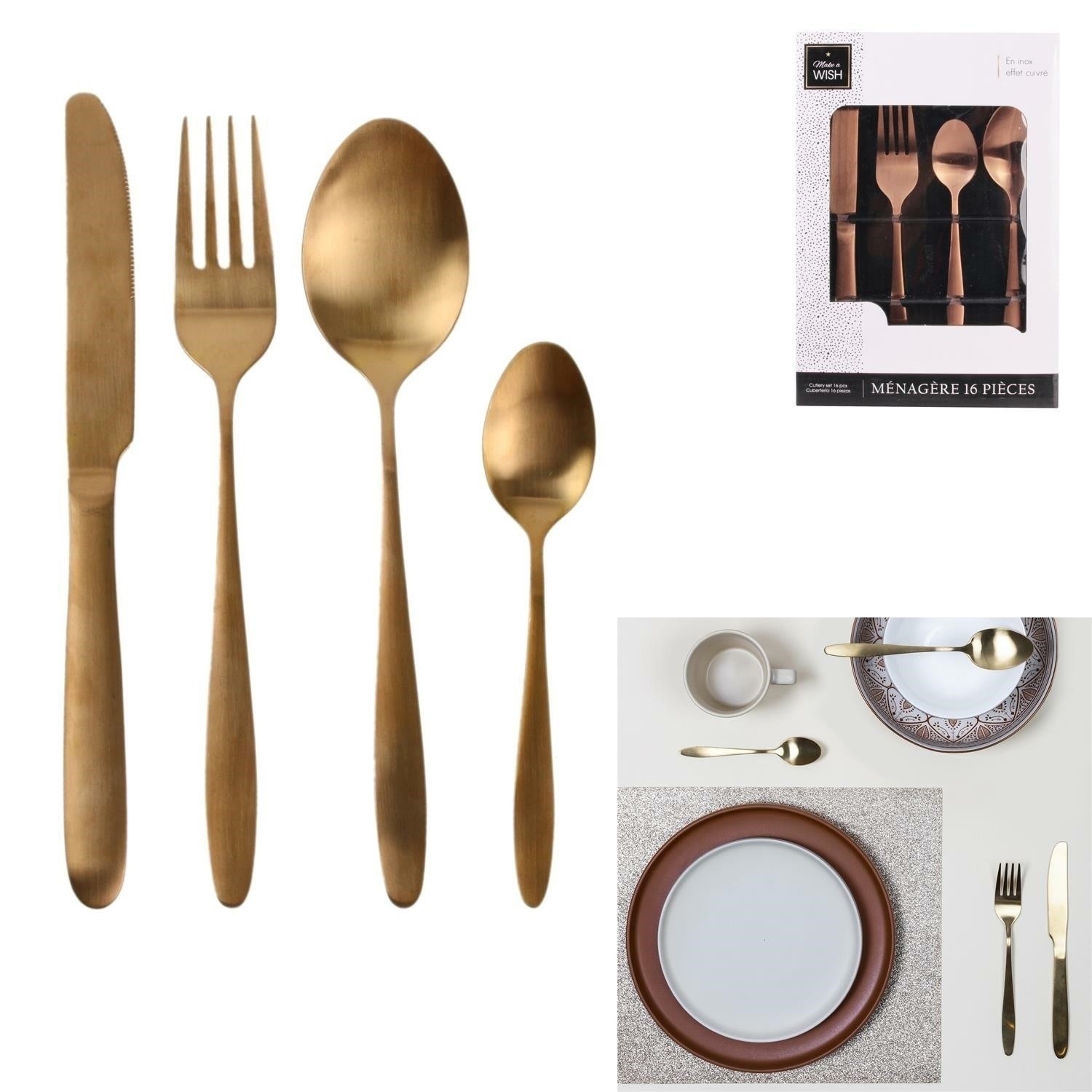 Zestaw sztućców CHARBON Miedziane 16szt to wyjątkowa kolekcja, która łączy elegancję z nowoczesnym stylem. Sztućce zostały wykonane z wysokiej jakości stali nierdzewnej, co zapewnia im trwałość oraz odporność na korozję. Miedziane wykończenie nadaje im ciepły, luksusowy wygląd, który wyróżnia się na stole i przyciąga wzrok. Dzięki ergonomicznemu kształtowi, sztućce są wygodne w użyciu, a ich solidna konstrukcja gwarantuje komfort podczas posiłków. Zestaw CHARBON Miedziane doskonale sprawdzi się zarówno na co dzień, jak i podczas specjalnych okazji, dodając każdemu posiłkowi wyjątkowego charakteru. To idealny wybór dla miłośników nowoczesnego designu oraz eleganckich akcentów w kuchni.